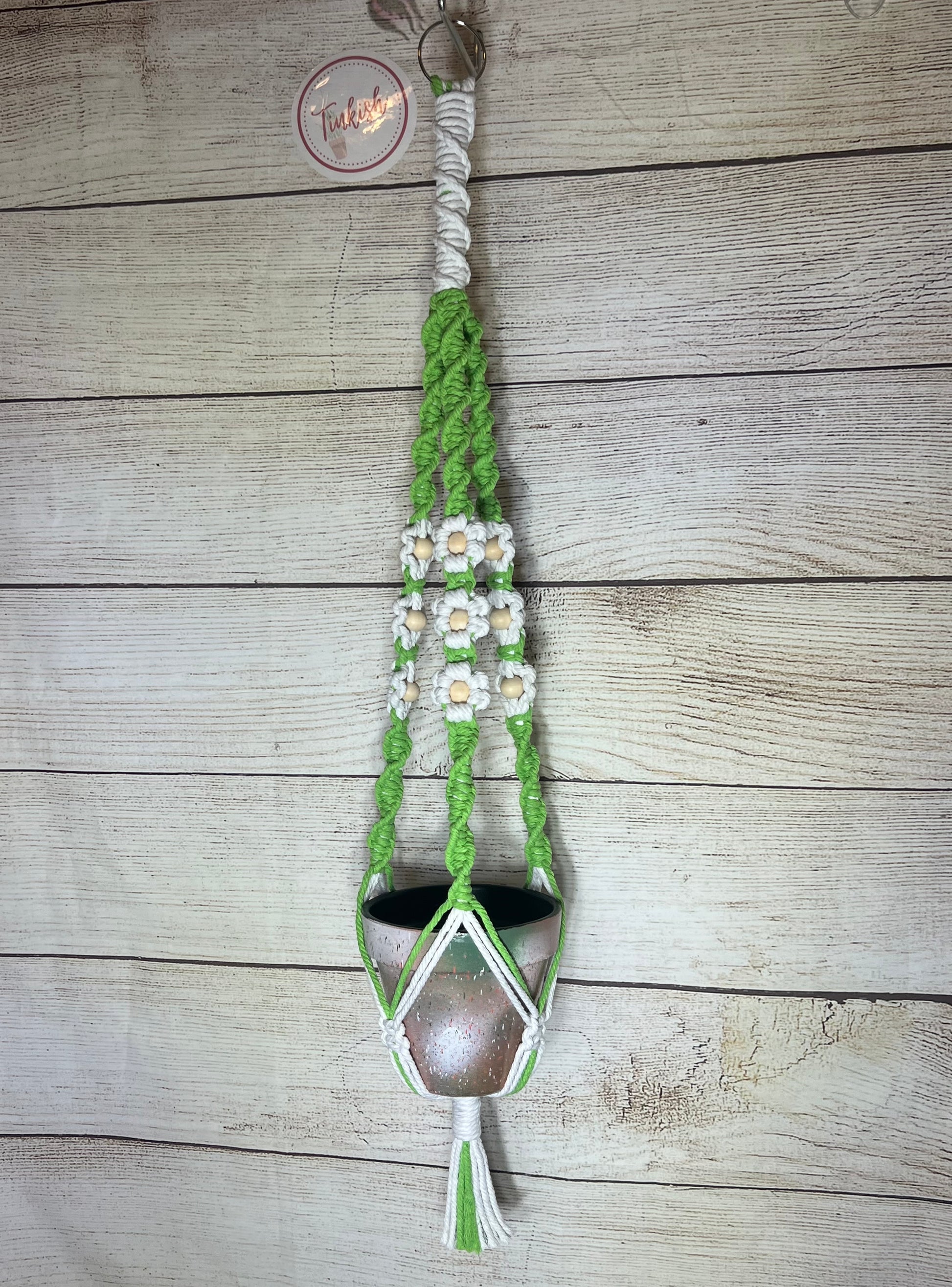 Bring a pop of color and charm to your space with our handcrafted Flower Macramé Plant Hangers! Each hanger features beautifully knotted cord, delicate daisy-style embellishments, and a secure fit for your favorite small to medium plant pots.
