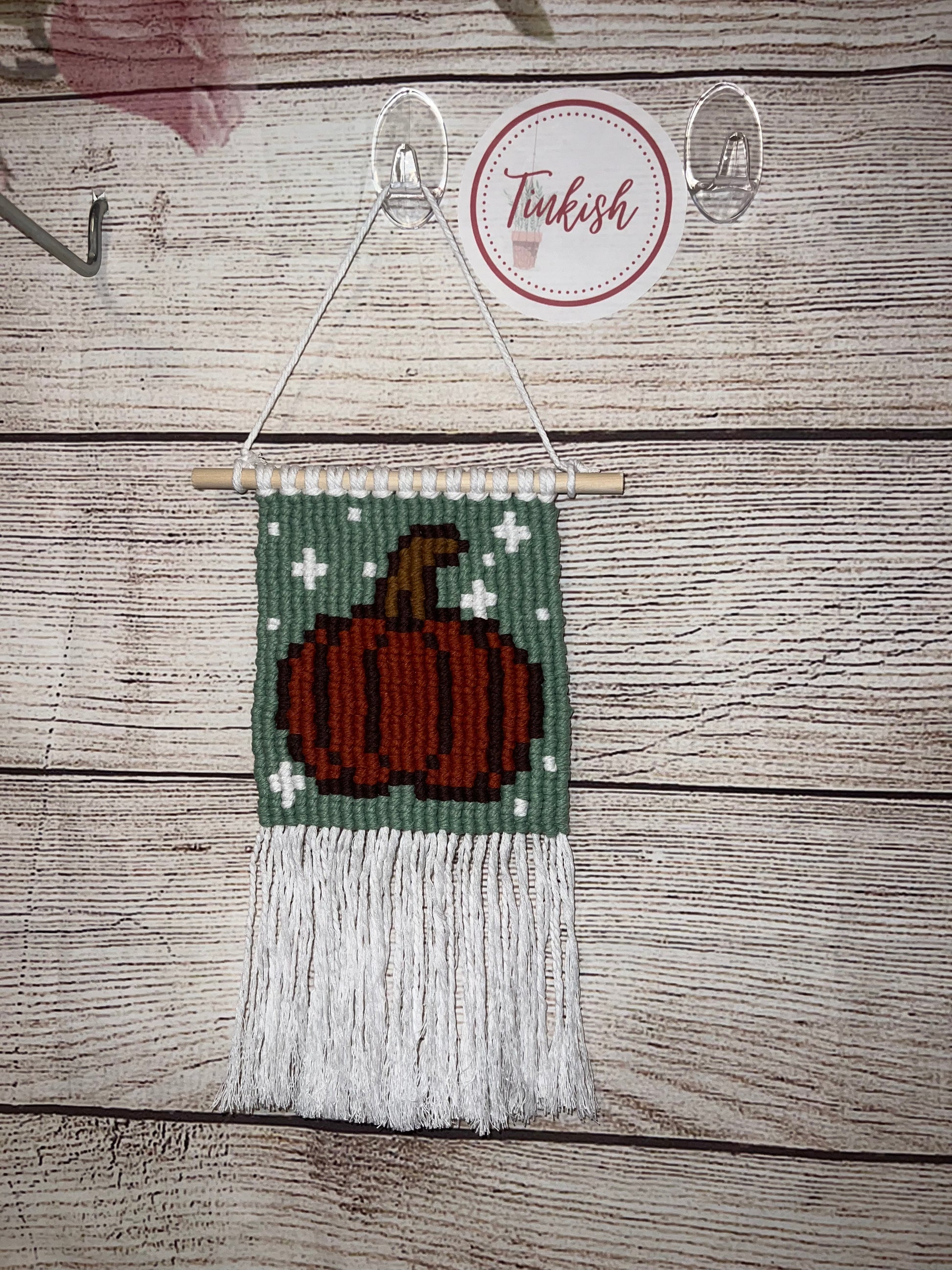 Pumpkin macrame pixel wall hanging